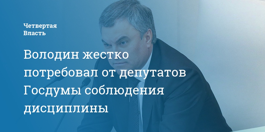 Председатель Государственной думы Вячеслав Володин потребовал от депутатов соблюдения дисциплины. Об этом сообщает телеграм-канал заксобрания.
