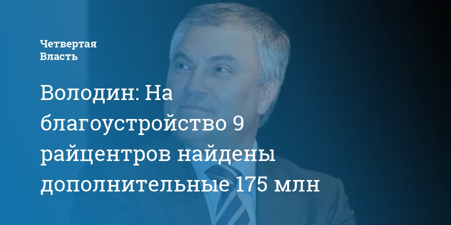 Володин: На благоустройство 9 райцентров найдены дополнительные 175 млн