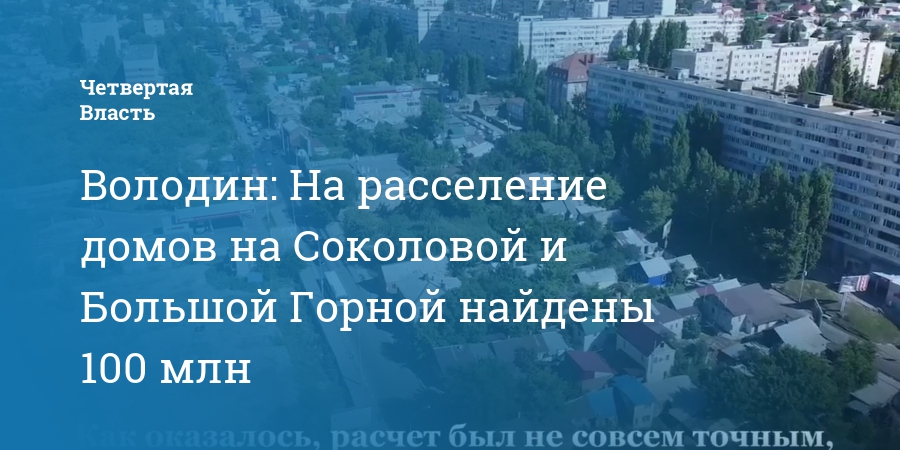 Володин: На расселение домов на Соколовой и Большой Горной найдены 100 млн
