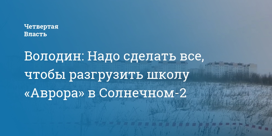 Володин: Надо сделать все, чтобы разгрузить школу «Аврора» в Солнечном-2
