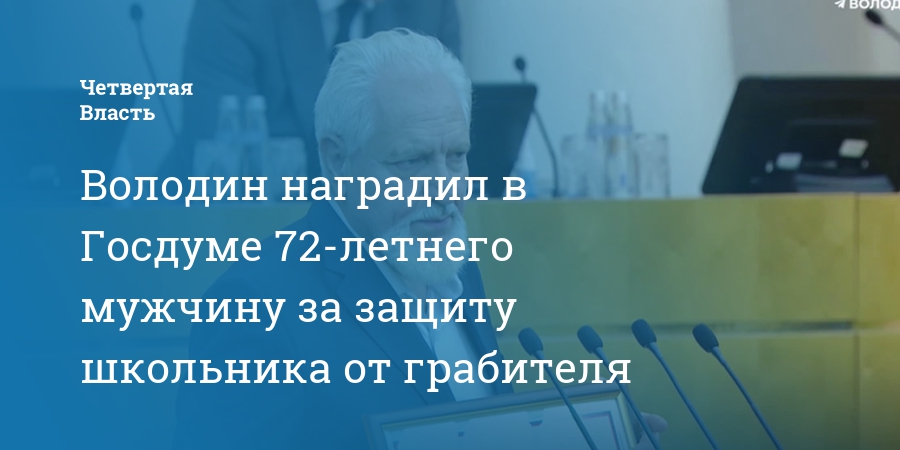 Володин наградил в Госдуме 72-летнего мужчину за защиту школьника от грабителя