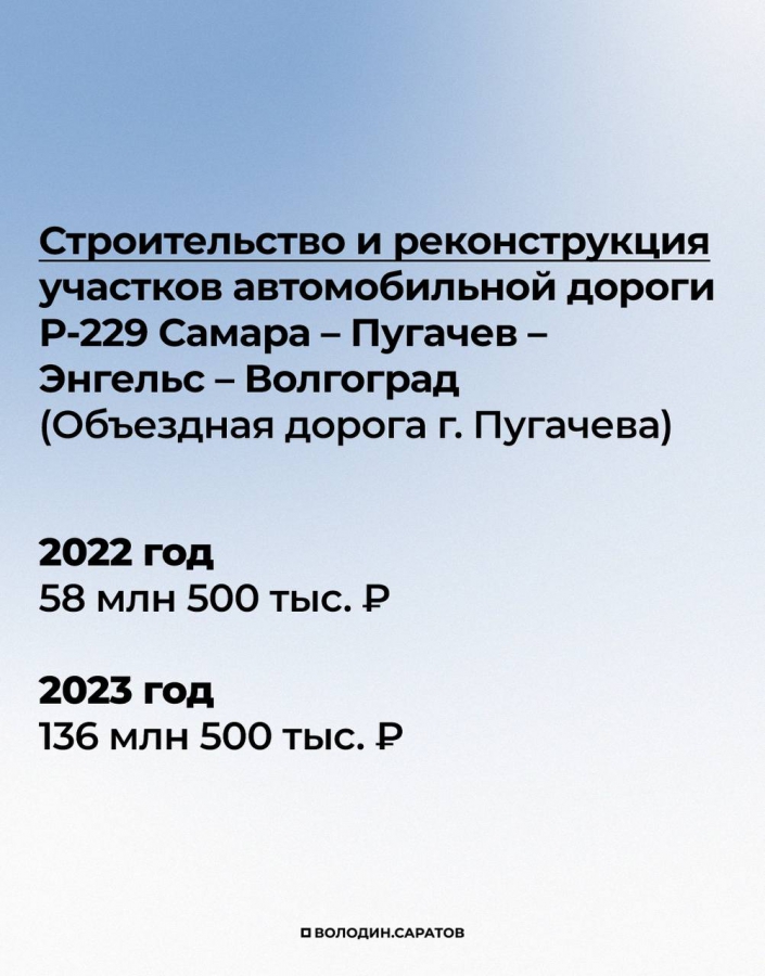 Помимо этого, финансирование пойдет на проектно-изыскательные работы по строительству объездной дороги вокруг Пугачева.