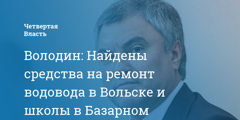 Председатель Госдумы Вячеслав Володин нашел решение вопроса ремонта водопровода и школы в Саратовской области. Об этом сообщили его сторонники в соцсетях.