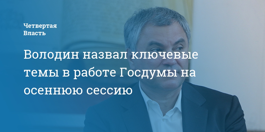 Председатель Государственной думы Вячеслав Володин обозначил планы работы заксобрания на осеннюю сессию. Об этом в своем телеграм-канале сообщили сторонники спикера.