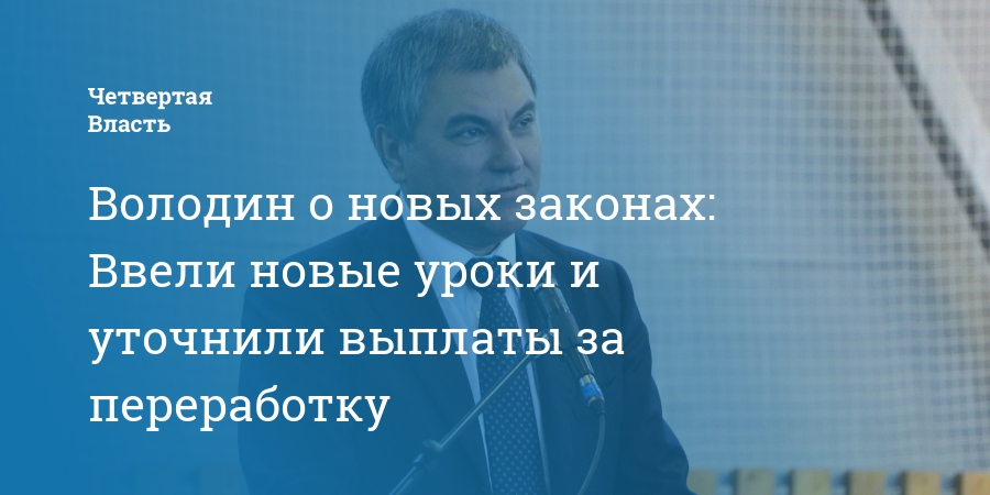 Володин о новых законах: Ввели новые уроки и уточнили выплаты за переработку