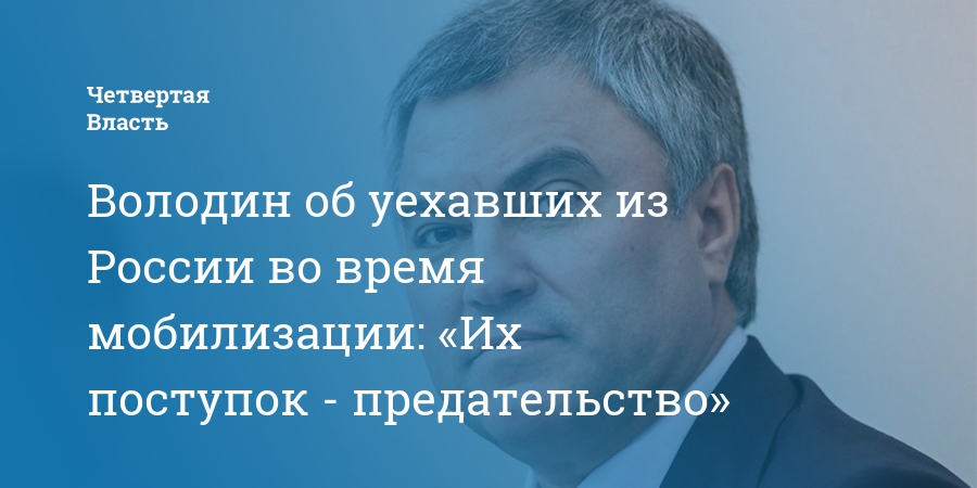Володин об уехавших из России во время мобилизации: «Их поступок - предательство»