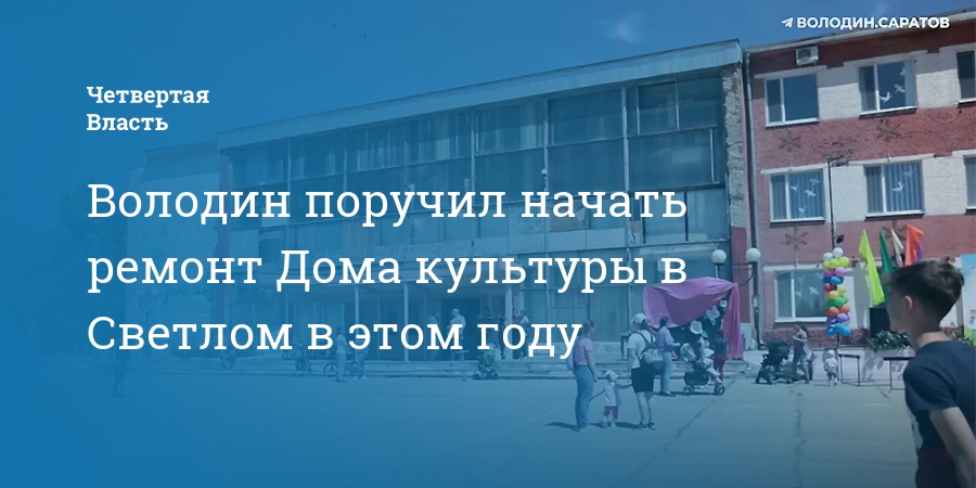 В этом году в ЗАТО Светлый Саратовской области начнется ремонт Дома культуры. Это выяснилось в ходе визита председателя Государственной думы Вячеслава Володина в регион, сообщают его сторонники в телеграм-канале.