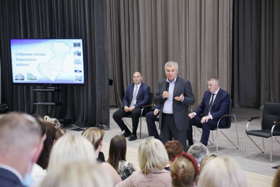 Сегодня председатель Госдумы Вячеслав Володин встретился с жителями Кировского района Саратова в предуниверсарии «Лицей-интернат 64»