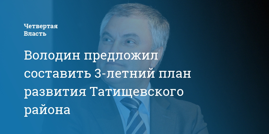 Председатель Государственной думы Вячеслав Володин предложил разработать 3-летний план развития Татищевского района. Соответствующая информация появилась появилась в его телеграм-канале.