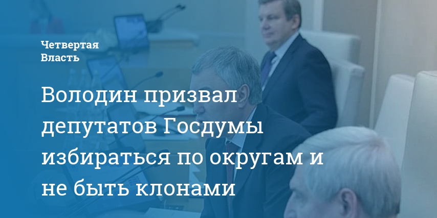 Володин призвал депутатов Госдумы избираться по округам и не быть клонами