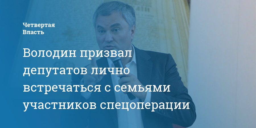 Председатель Государственной думы Вячеслав Володин призвал депутатов лично встречаться с семьями участников спецоперации на Украине. Отрывок из его выступления в федеральном парламенте опубликовали сторонники в телеграм-канале «Володин.Саратов».