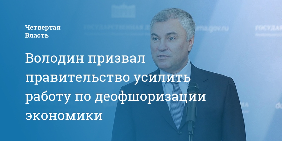 Председатель Госдумы Вячеслав Володин отметил работу правительства РФ по деофшоризации экономики России. Об этом спикер написал в своем телеграм-канале.