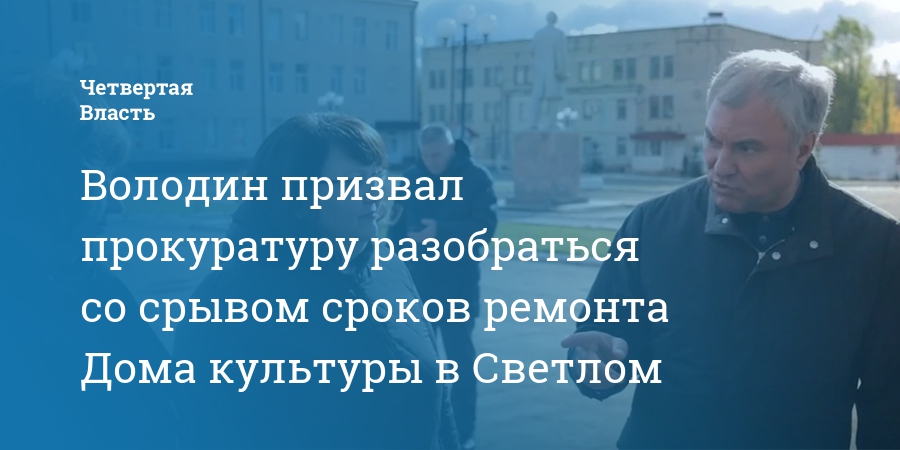 Володин призвал прокуратуру разобраться со срывом сроков ремонта Дома культуры в Светлом