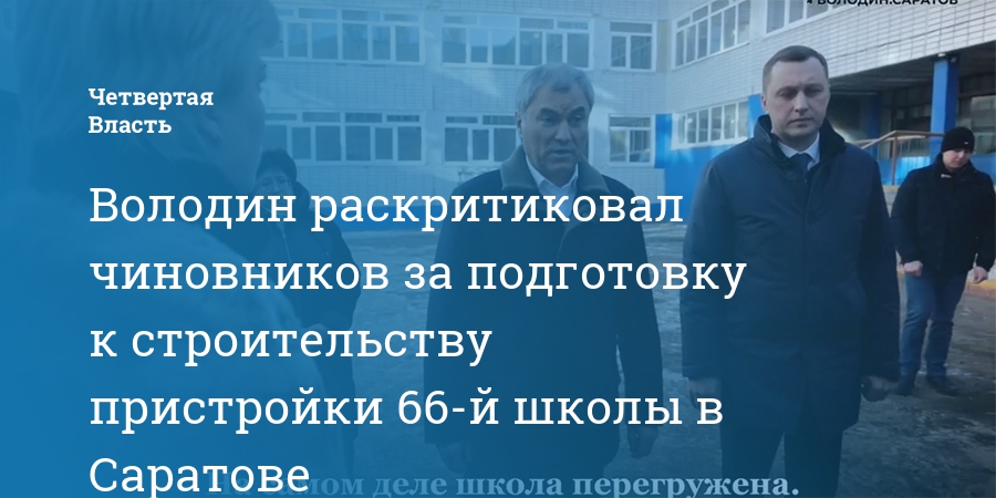 Володин раскритиковал чиновников за подготовку к строительству пристройки 66-й школы в Саратове