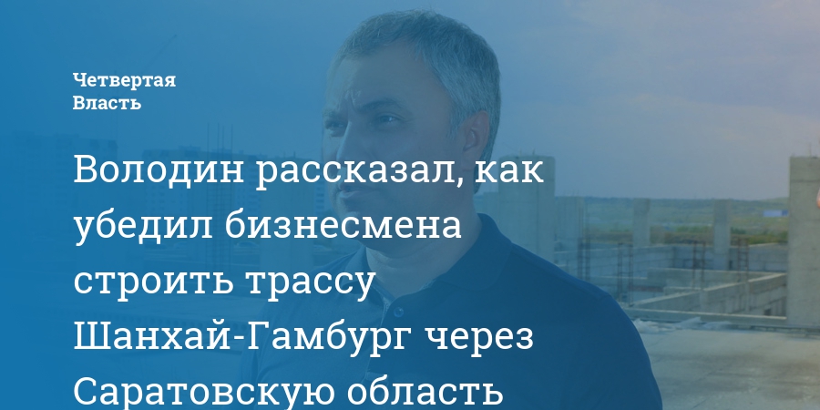 Володин рассказал, как убедил бизнесмена строить трассу Шанхай-Гамбург через Саратовскую область