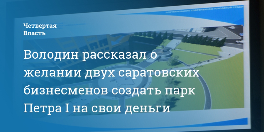 В Саратове представители бизнеса предложили помощь в постройке парка Петра I . Об этом рассказал председатель Госдумы Вячеслав Володин, его видеообращение опубликовали сторонники в группе «Володин. Саратов» соцсети «ВКонтакте».