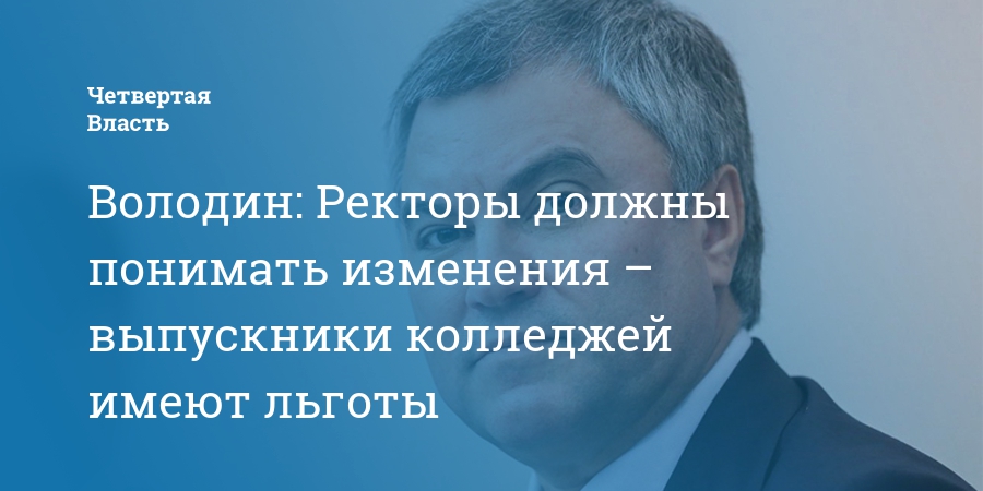 Володин: Ректоры должны понимать изменения – выпускники колледжей имеют льготы