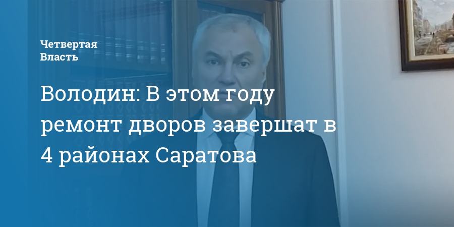 В текущем году в Гагаринском, Фрунзенском, Кировском и Октябрьском районах Саратова планируется полностью завершить работы по депутатскому проекту «Ремонт дворов». Об этом сообщили в телеграм-канале сторонников председателя Государственной думы Вячеслава Володина.