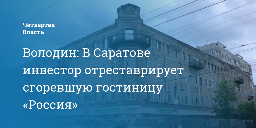 В Саратове реставрацией гостиницы «Россия», которая сгорела во время пожара, займется крупный инвестор. Об этом сообщили в телеграм-канале помощников председателя Государственной думы Вячеслава Володина.