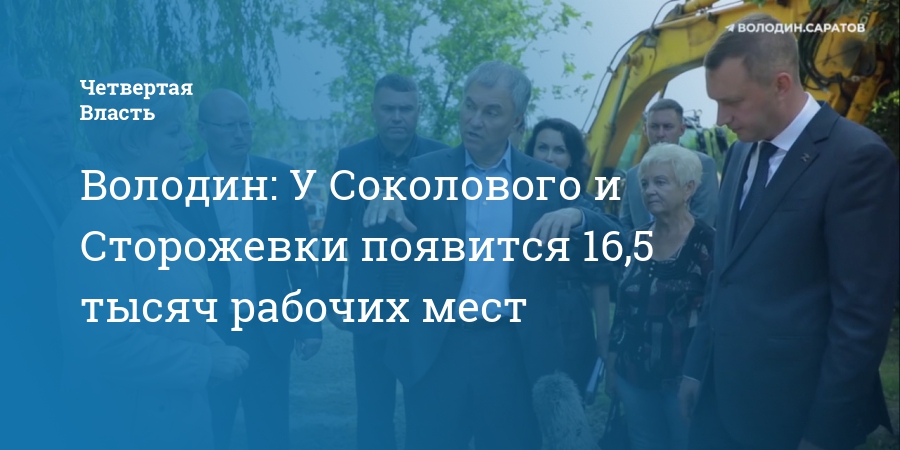 Володин: У Соколового и Сторожевки появится 16,5 тысяч рабочих мест