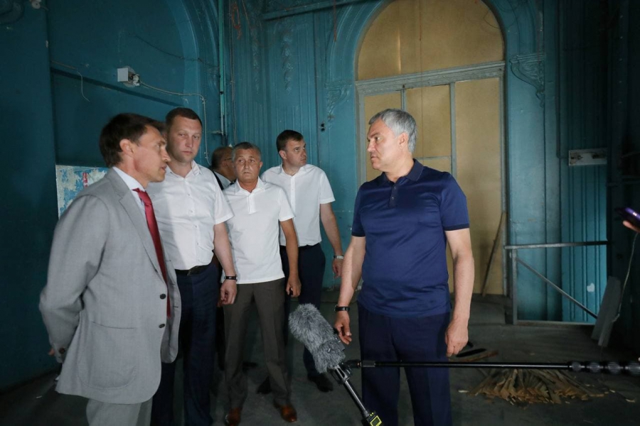 Внутри помещения он отметил красивую лепнину, которая уже разрушается от протекания крыши. Володин подчеркнул, что наши предки создавали архитектурную красоту, а мы оставляем за собой только мусор, что характеризует сегодняшнее поколение. Он заявил, что будет бороться за восстановление здания и здесь нужно разместить школу, которой не хватает местным жителям. Спикер призвал чиновников активнее защищать памятники архитектуры.