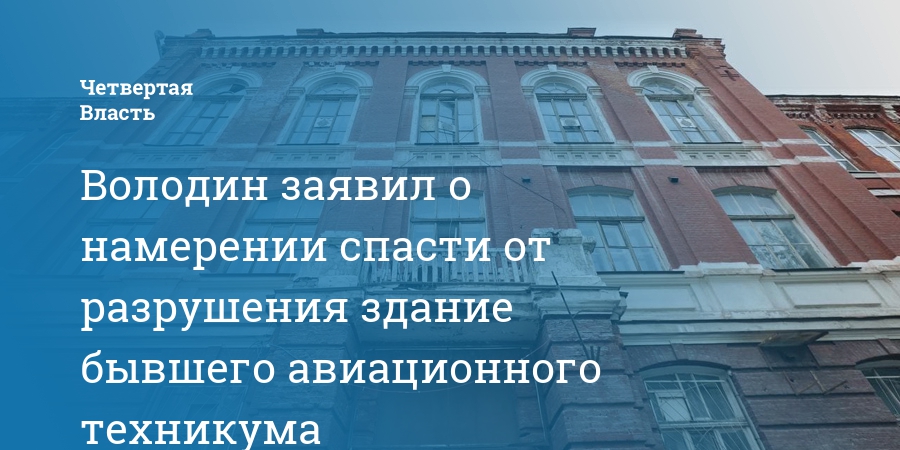 Володин заявил о намерении спасти от разрушения здание бывшего авиационного техникума