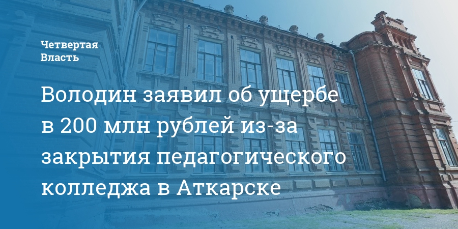 Володин заявил об ущербе в 200 млн рублей из-за закрытия педагогического колледжа в Аткарске