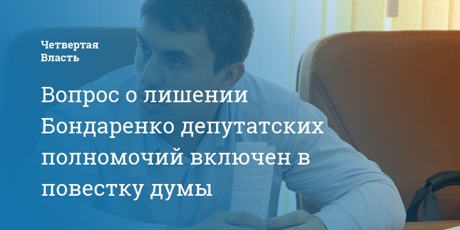 Вопрос о лишении Бондаренко депутатских полномочий включен в повестку думы