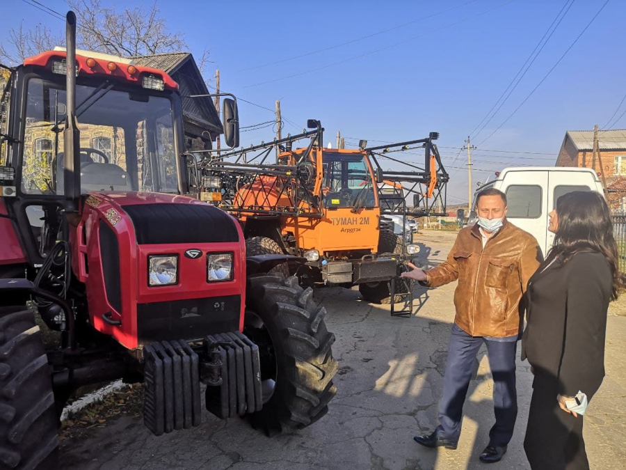 Перед домом культуры организовали выставку техники, которую поставили в район: это и школьные автобусы, машина скорой помощи, автомобили для пожарной части и сельскохозяйственная техника.