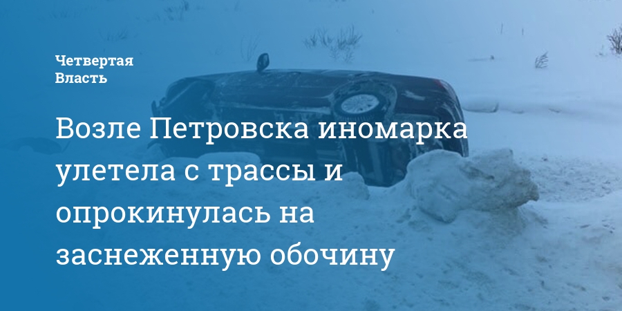 Возле Петровска иномарка улетела с трассы и опрокинулась на заснеженную обочину