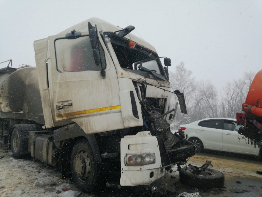 Возле Саратова столкнулись бензовоз, фура и «Нива». Один человек погиб