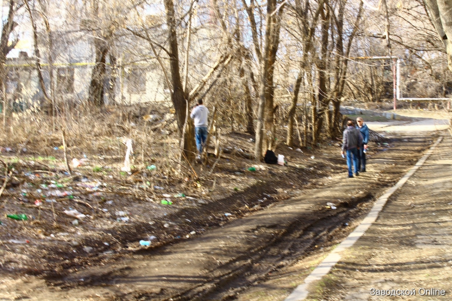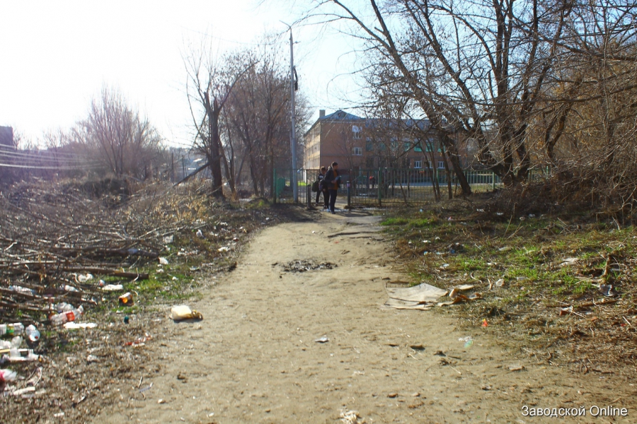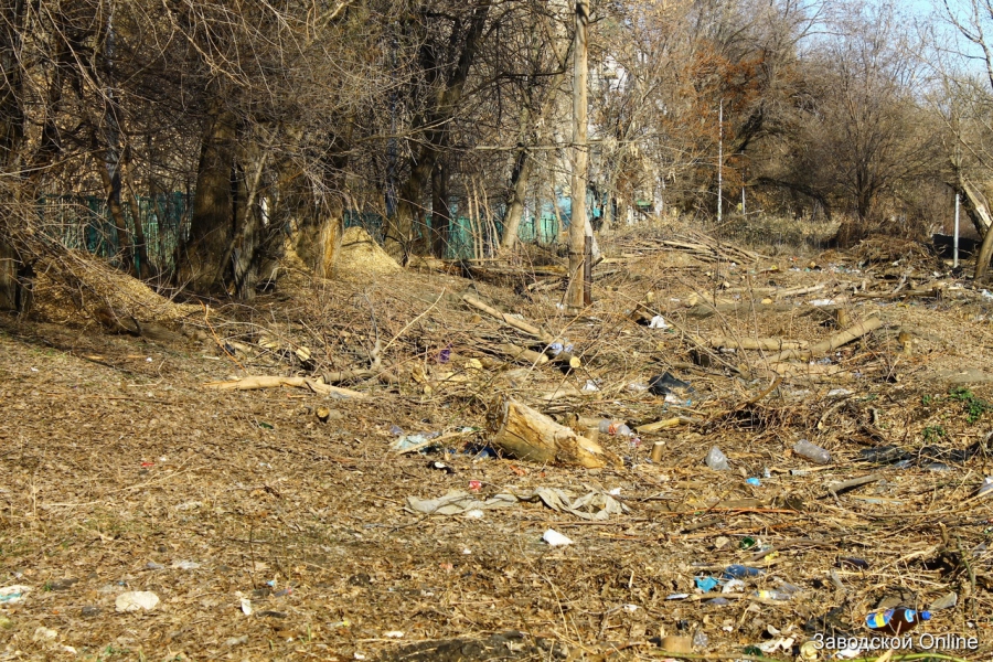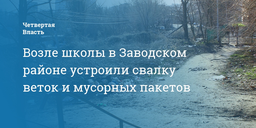 Возле школы в Заводском районе устроили свалку веток и мусорных пакетов