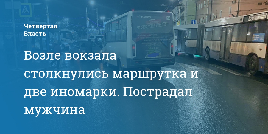 Возле вокзала столкнулись маршрутка и две иномарки. Пострадал мужчина