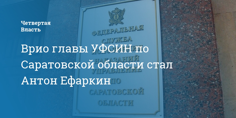 Управление Федеральной службы исполнения наказаний по Саратовской области возглавил полковник внутренней службы Антон Ефаркин. Такая информация размещена сегодня, 19 октября, на официальном сайте ведомства.