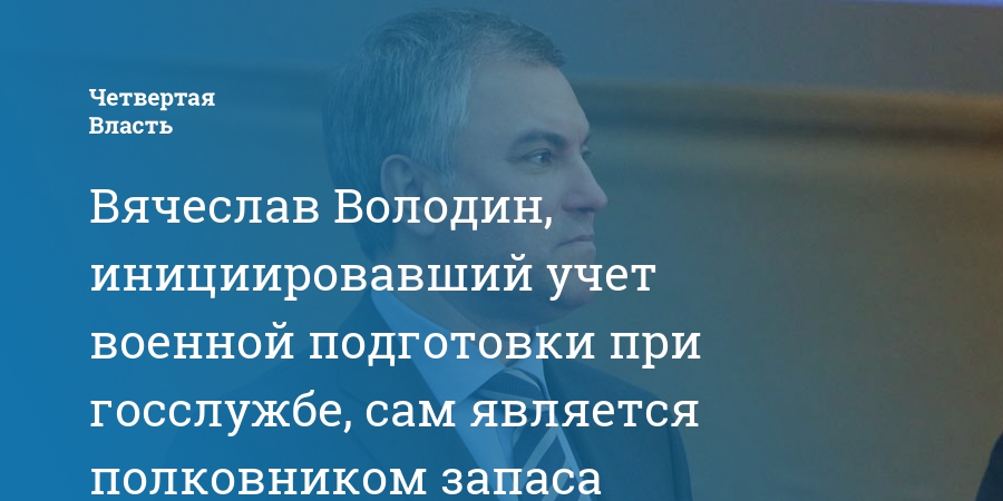 Вячеслав Володин, инициировавший учет военной подготовки при госслужбе, сам является полковником запаса