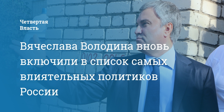 Вячеслава Володина вновь включили в список самых влиятельных политиков России