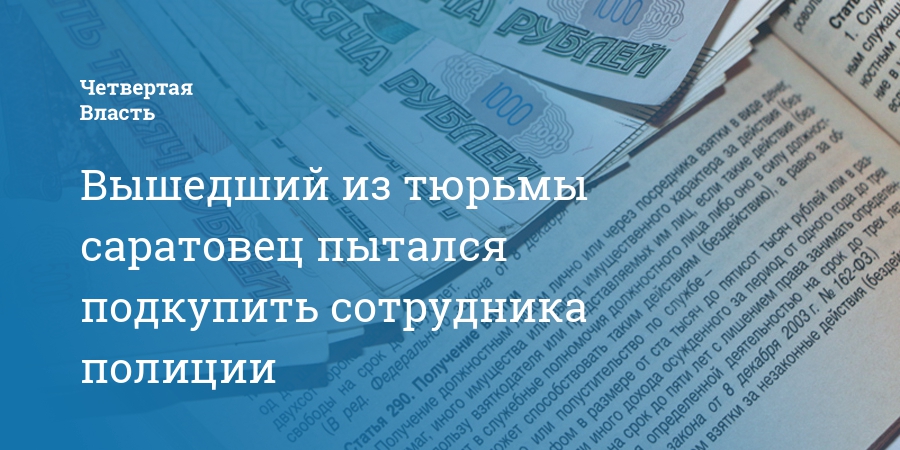 Вышедший из тюрьмы саратовец пытался подкупить сотрудника полиции