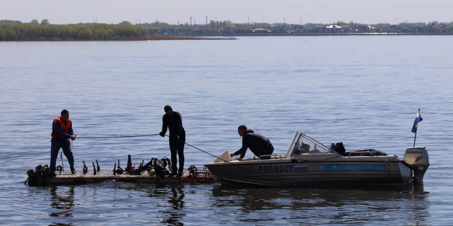 Рабочие расконсервировали часть фонтана, которая на зиму была помещена в толщу льда, глубиной 6 метров. На поверхности воды в Волге возвели понтон. Ожидается, что фонтан заработает с 1 мая.