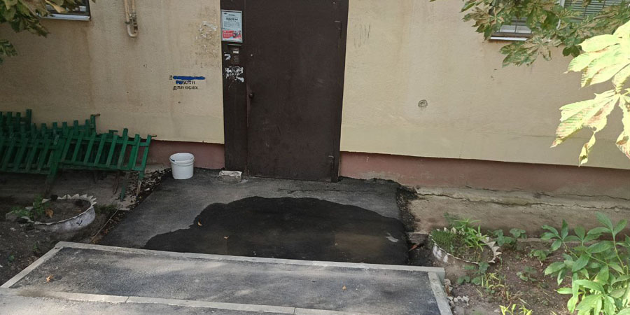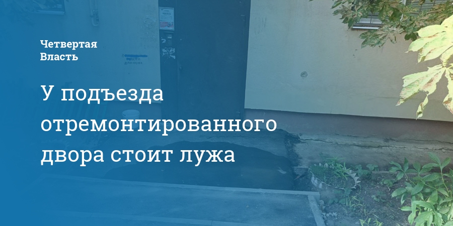 У 4-го подъезда отремонтированного двора по 1-му проезду Скоморохова, 11 стоит лужа. Подрядчику не удалось обеспечить водоотведение на площадке перед подъездом, к которой подходит входная группа в виде ступеней. Это заметили сотрудники «Дорожного контроля» во время проведения проверки отремонтированных территорий.