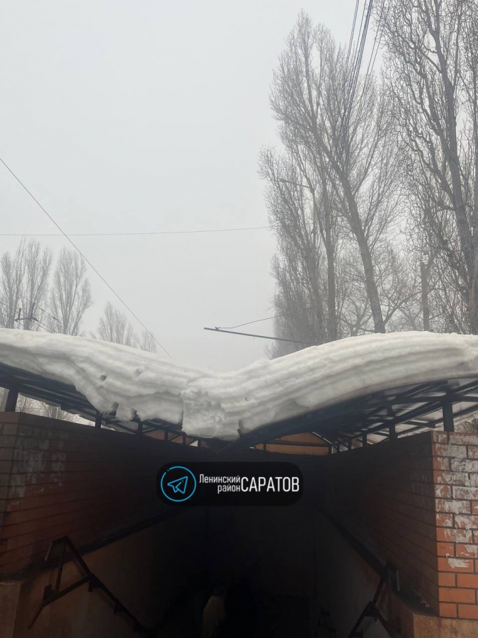 В Ленинском районе Саратова у подземного перехода под тяжестью снега погнуло пластиковую крышу. Этот переход капитально отремонтировали три года назад.