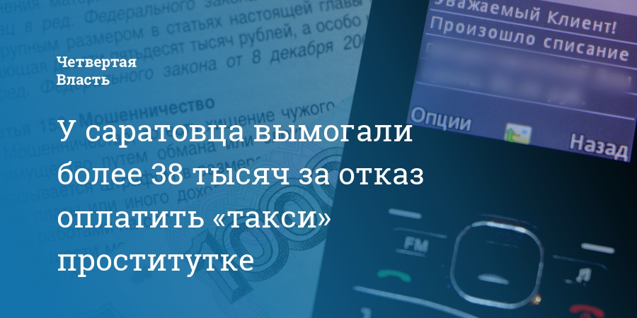 У саратовца вымогали более 38 тысяч за отказ оплатить «такси» проститутке