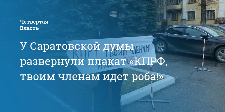 У Саратовской думы развернули плакат «КПРФ, твоим членам идет роба!»