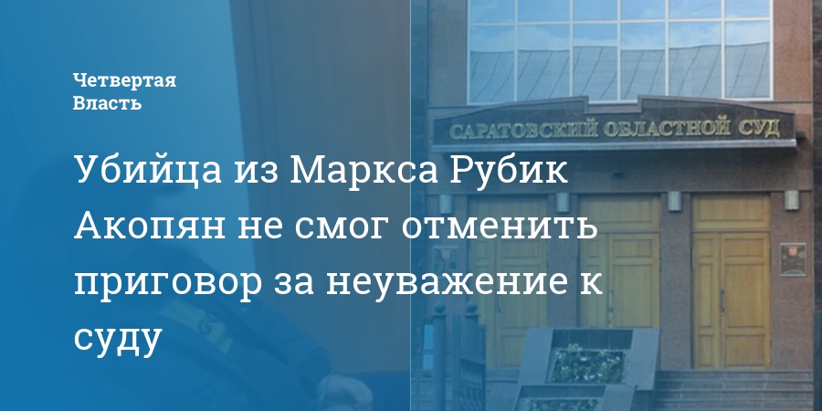 - 5 Убийца из Маркса Рубик Акопян не смог отменить приговор за неуважение к суду