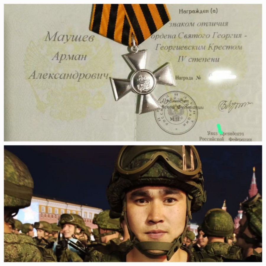 По указу президента РФ Владимира Путина Арман Маушев награжден знаком отличия, орденом Святого Георгия – Георгиевским Крестом IV степени.