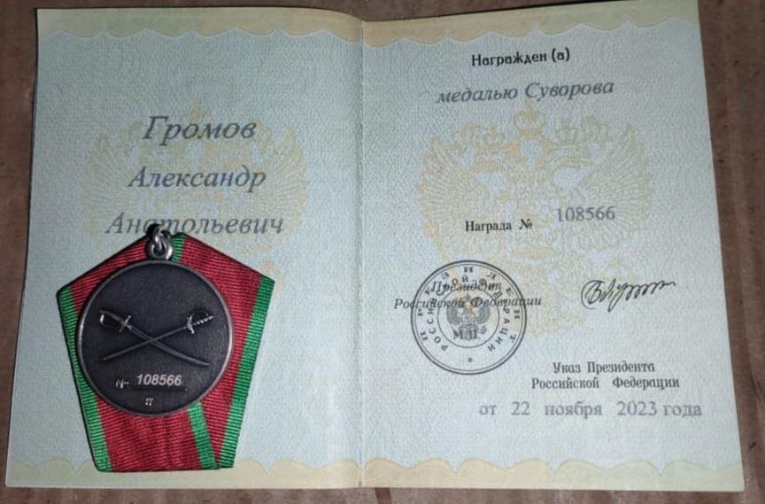 Бойцу спецоперации из Краснопартизанского района Саратовской области Александру Громову вручили медаль Суворова. Об этом сообщили в районной администрации.