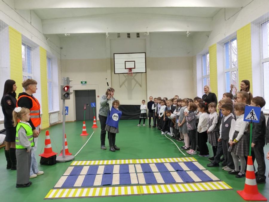 Преподаватели юношеской автошколы рассказали школьникам об основах безопасного поведения пешеходов и напомнили, как пересекать проезжую часть на различных участках дороги. Для этого в помещении создали «дорожные условия» со специальным оборудованием (светофор).