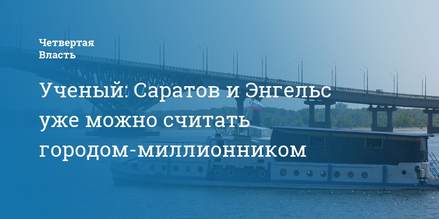 Саратов и Энгельс де-факто уже можно считать городом-миллионником, потому что это практически сросшиеся города. Об этом заявил ведущий научный сотрудник Института социального анализа и прогнозирования РАНХиГС Никита Мкртчян, его цитирует федеральное издание «Взгляд».