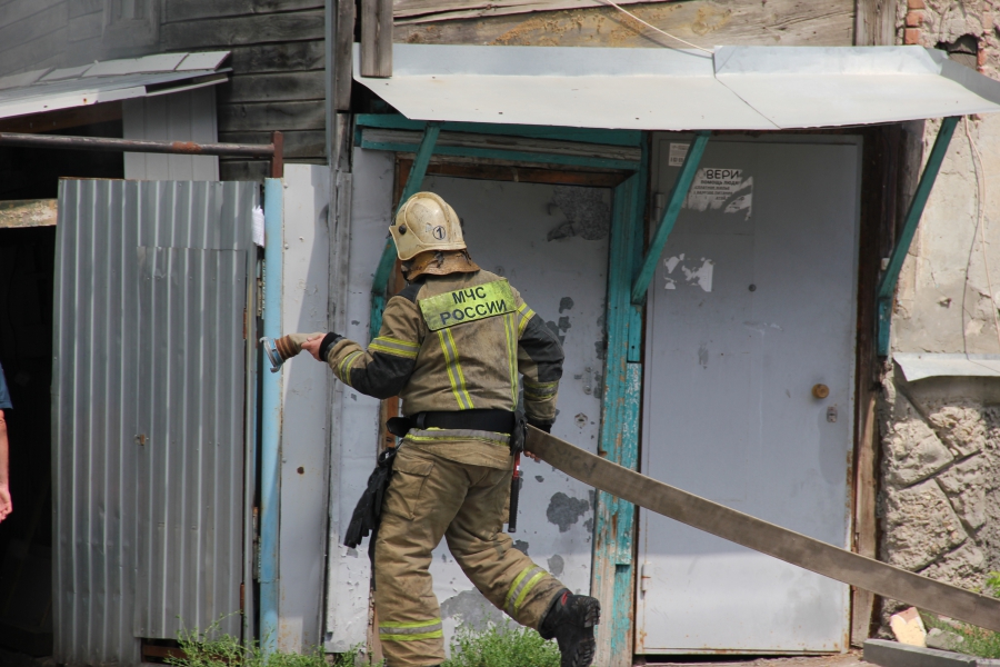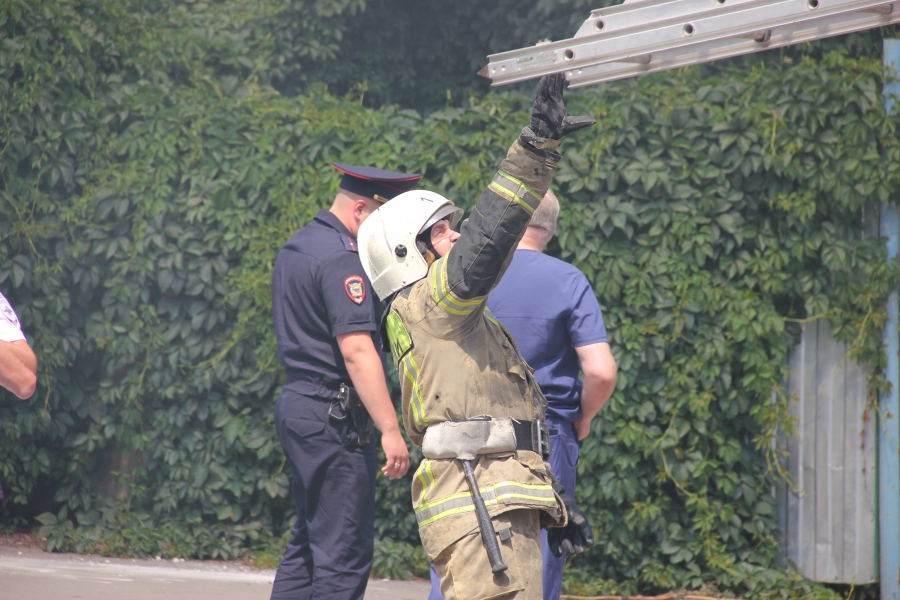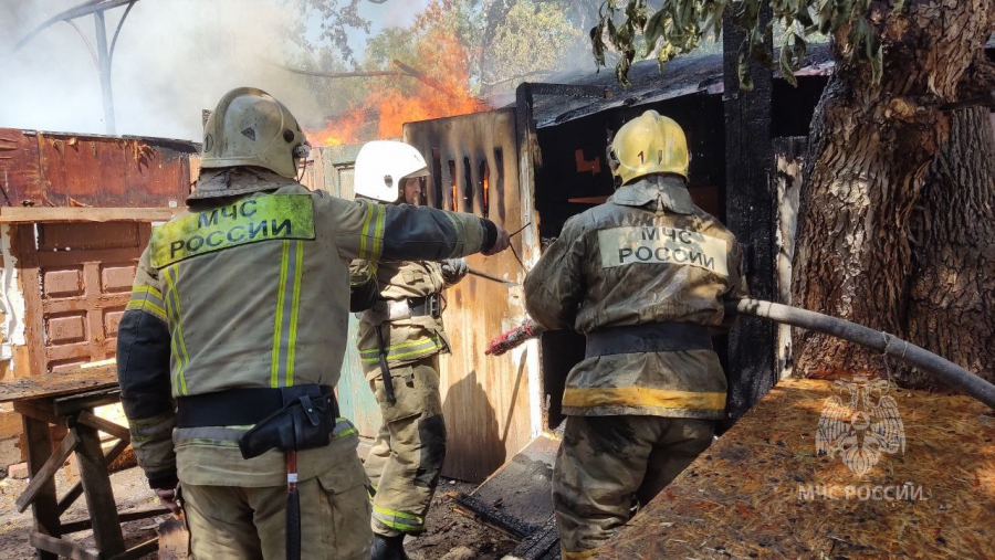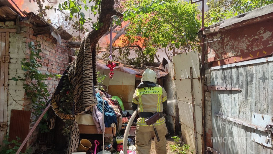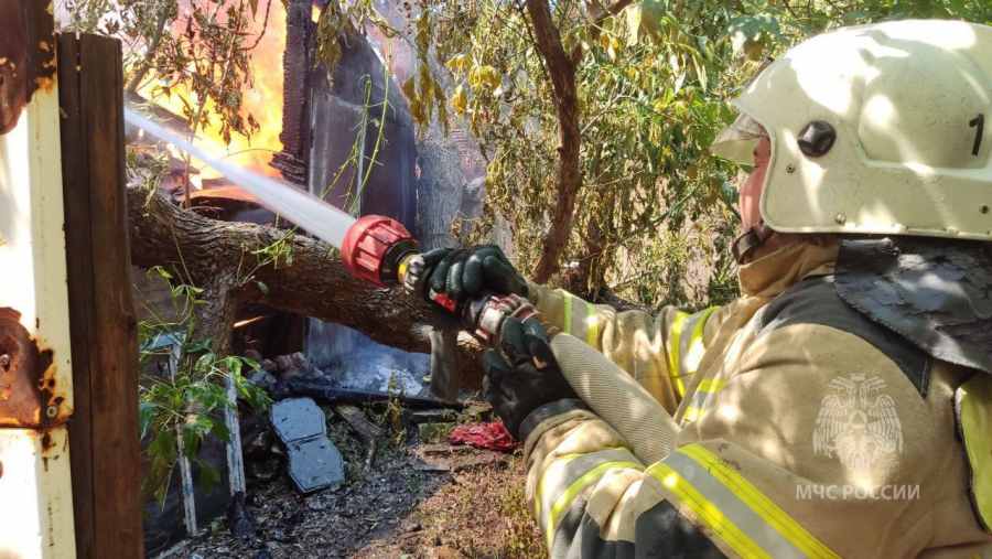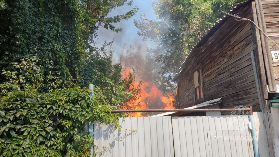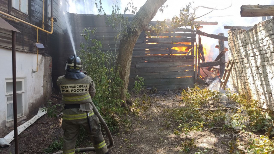 В ведомстве пояснили, что в 12.44 поступило сообщение о пожаре на пересечении улиц Соборная и Челюскинцев. На площади 100 кв. м пламя охватило надворные постройки. Из-за расположения и плотной застройки пожар едва не распространился на деревянные жилые дома.