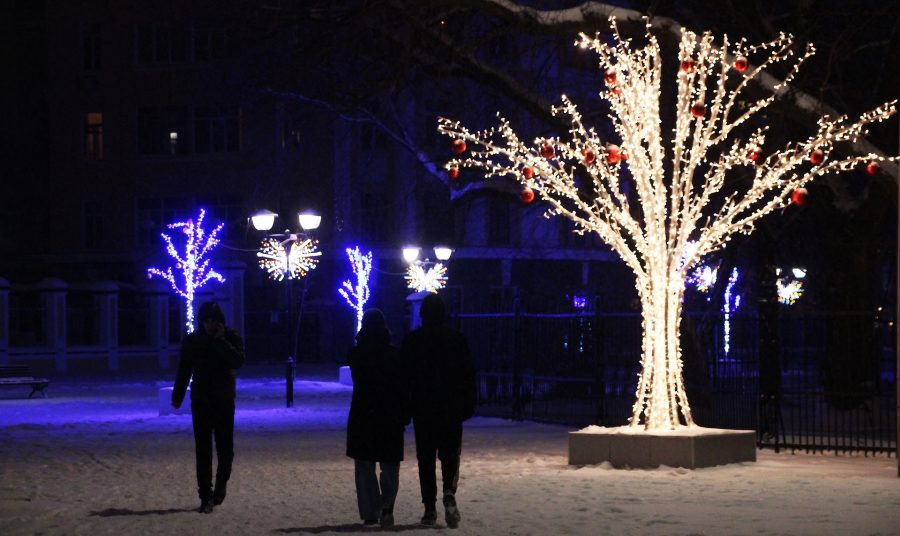 Через несколько часов жители Саратова начнут праздновать Новый 2022 год. Впереди длинные выходные, которые из-за коронавирусных ограничений вновь не будут переполнены концертами, елками и фейерками. Впрочем, у горожан всегда есть возможность зарядиться новогодним весельем прямо на улицах Саратова.
