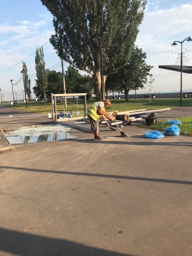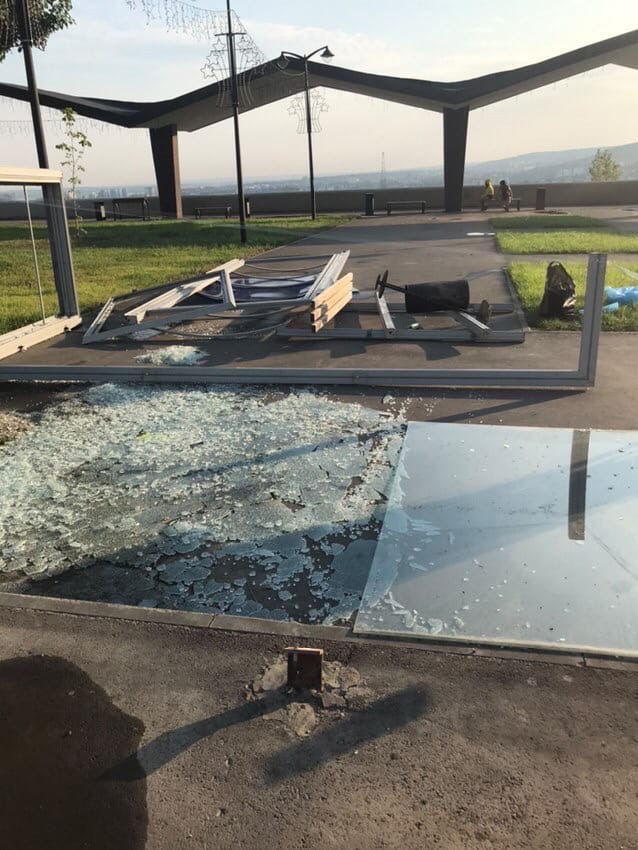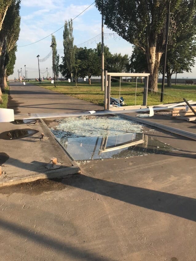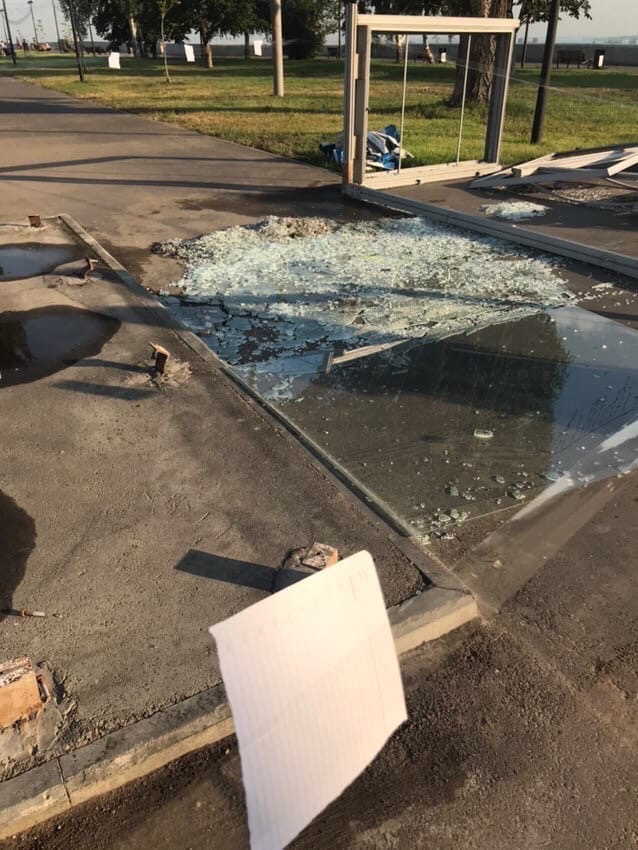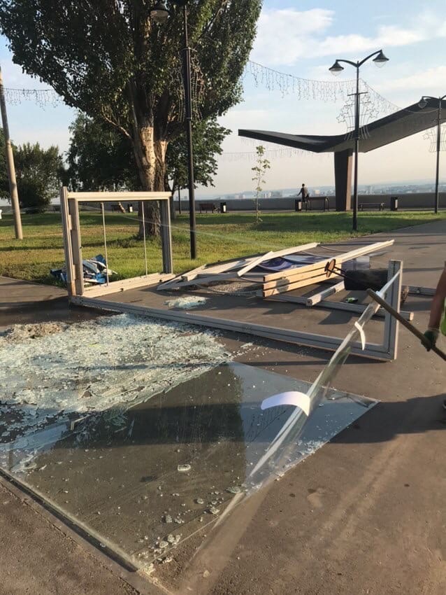 Сильный ветер серьезно повредил остановку на улице Аэропорт в районе бывшей воздушной гавани. У конструкции не только разбиты стекла, но и рухнули металлические стенки. На Усть-Курдюмской в районе ТЦ «Квадро» с одной из сторон разрушен рекламный щит, порванная часть конструкции лежала на земле.